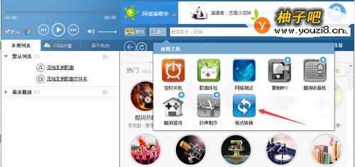 3点进酷狗音乐的工具后会跳出一个窗口,点击窗口里面的格式转换就可以了。