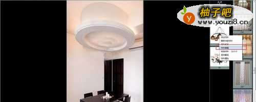3任选其中一张图片,鼠标右击选择“材料编辑”,界面即跳转入模型编辑模式中,在左上方功能图标中找到“透明”工具,点击后进入透明界面,利用“魔术棒”与“橡皮擦”功能对吊灯图片进行背景去除;