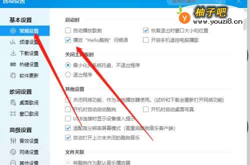 电脑版酷狗怎么关闭启动时问候语hello酷狗