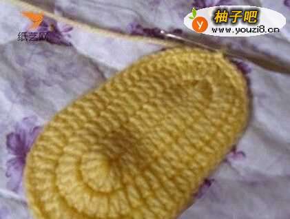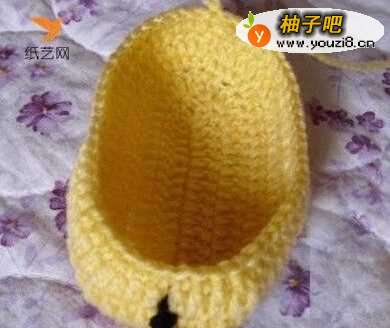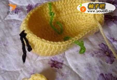 3现在织鞋子上的鞋带用另一根线织八针长针,然后把它捆起来。