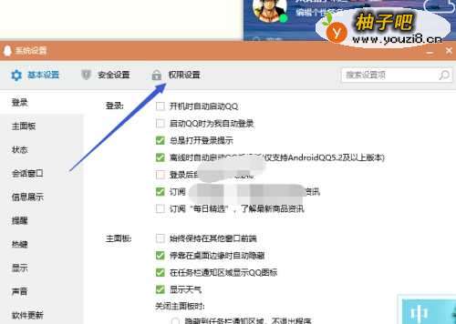 3打开系统设置的小窗口,默认进入到基本设置中,点击上方三个标签中的权限设置。