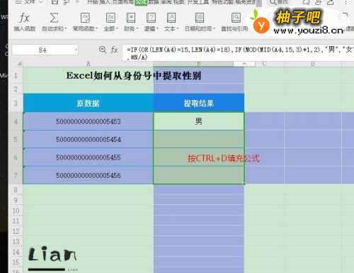 本经验介绍在Excel应用中,如何从身份号中提取性别的操作方法。应用场景如下:
