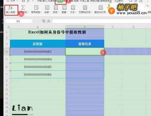 2选择单元格【B4】,点击【公式】—【插入函数】;
