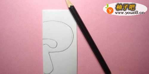 2接着,把正方形卡纸对折一半,并用铅笔在白纸上,画出好看的蘑菇图形,根据对称图形,这里画出半个图形,如下图所示。