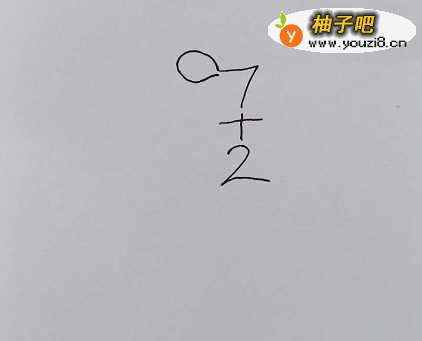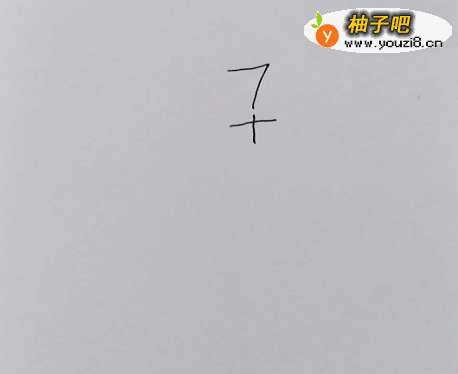 5再写=9吗?不是,我们在数字7那里画一个耳朵