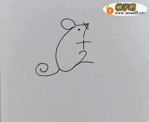8最后呢,我们把老鼠的尾巴给画出来。这样,一个简笔画老鼠就完成了!