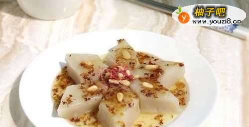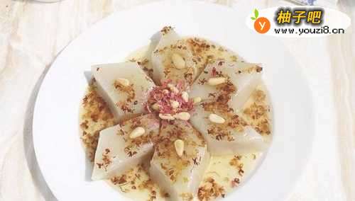 8装盆后淋上糖桂花加上熟松仁即可享用。