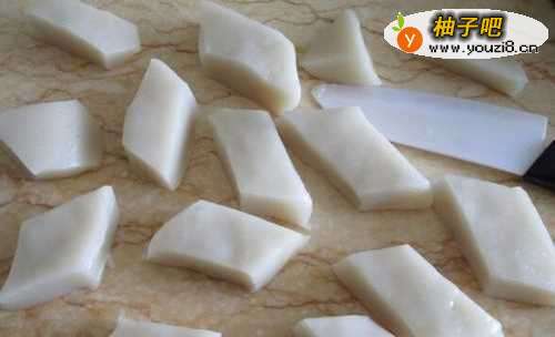 7等凉透后取出切成菱形块。