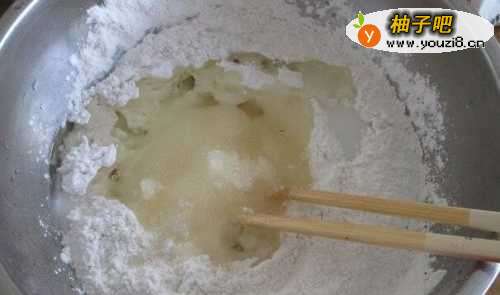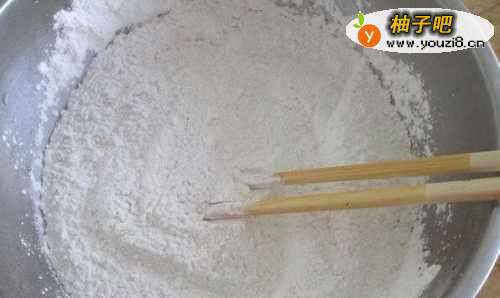 3先把糯米粉和澄粉混合
