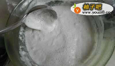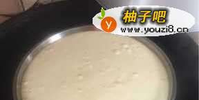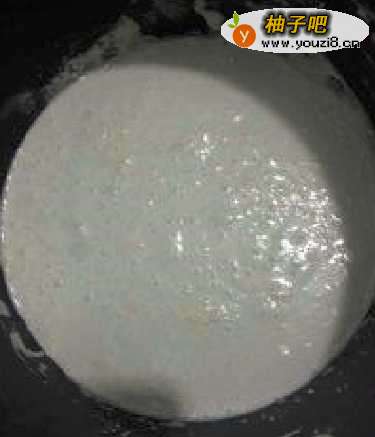 4磨出来后米浆表面泡泡比较多,这是酒曲发酵的结果,而且此时的米浆比较稀。把磨好的米浆放在室温下静置。