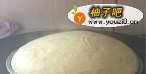 6用大锅把水烧开,放入一个蒸菜的铁架。给托盘上油,然后把浓稠的发糕粉勺到托盘上(粉平面离盘口2厘米),慢慢平放在铁架上,盖盖子,用旺火蒸连续5分钟(期间不得开盖,这是保证发糕不塌陷的核心步骤)就好了。