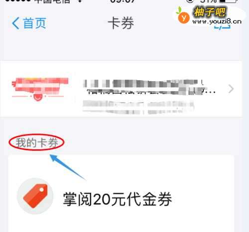3然后返回到支付宝首页,在"我的卡券"里面可以快捷的找到它;然后就要打开掌阅了,在我的账号充值界面,我们找到充值金额,确保要充值的金额超过20元才可以哦,比如笔者打算充值30元