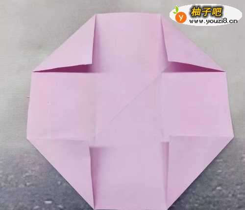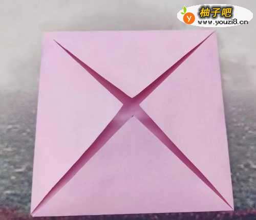 9再准备一张同样大小的正方形纸,折出”X形“折痕,再将纸三等分,折出“井字”形折痕。见下图