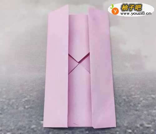 3再把两边向中间折,中间要留出大约0.5厘米的距离,展开后,另一边也按同样方法折叠。见下图