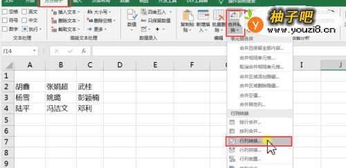 3在【编辑】功能组,【合并转换】下三角按钮→行列转换【行列转换】囊宋独