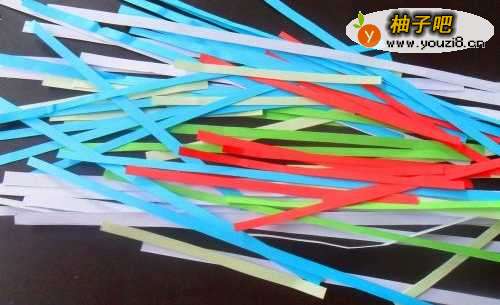 准备好多种颜色的彩纸。要是有现成的裁好的彩色纸条更好,省得自己再裁。