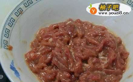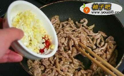 2锅热放油,油还不是很热的时候将肉丝倒进锅里,待周围有白色泡泡轻轻起炸的时候,用筷子轻轻地将肉丝分开。