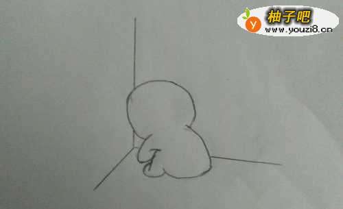 5然后再把小人的面前画上三道直线,就如同墙角一般。