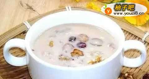 食材:核桃仁2块、红枣6-8个、乳清蛋白营养奶米粉40g。