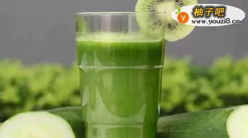 4、把切好的猕猴桃和黄瓜块放入搅拌机中,榨成汁,调入蜂蜜即可。
