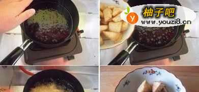 2油锅开始冒点泡泡就下锅炸(不要太热,会干掉,等一下还要炸第二次),变黄色就捞起来。
