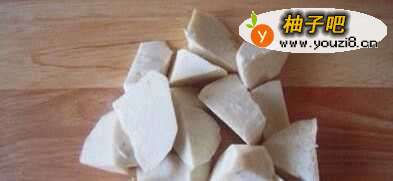 6关火,倒入芋头,不停地搅拌,拌越多拔丝越多