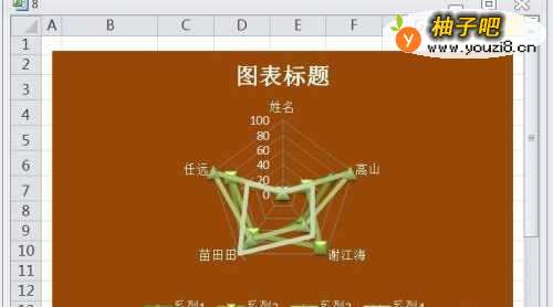 EXCEL带数据标记的雷达图的图表布局显布局4效果