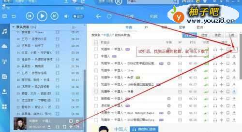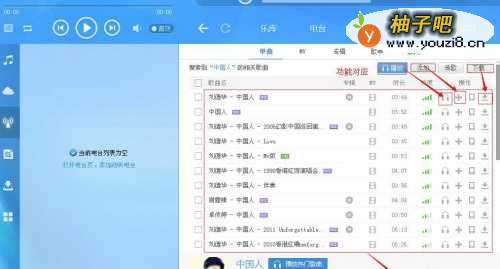 3下面就是找到的“中国人”的有关歌曲,并且可以看到每个歌后面四个图标,我把它的功能介绍了一下