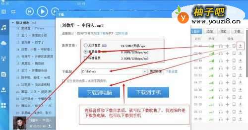 6点击下载后,弹出了下载页面,我们可以选择音质和下载目录,并且可以选择下载电脑或者手机,我这里选择下载电脑,点击“下载到电脑”,就可以铲注板下载了。如下图下载成功后,歌曲就显示在已下载列表中了。