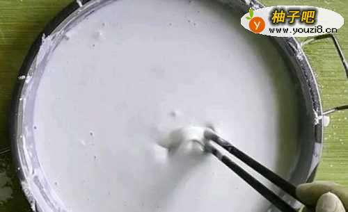 蒸好的糯米面就像年糕一样,用筷子一挑可以拉很长,这种状态就刚刚好,假如和得太稀的话蒸出来以后捏不成团,这样只会更加耽误时间。家里有一次性手套也建议大家不要使用,会特别的黏。