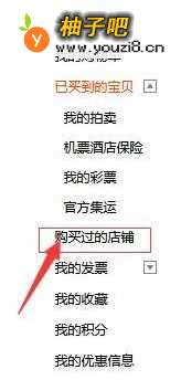 6在左侧菜单中,点击购买过的店铺,则右侧会显示购买过的店铺: