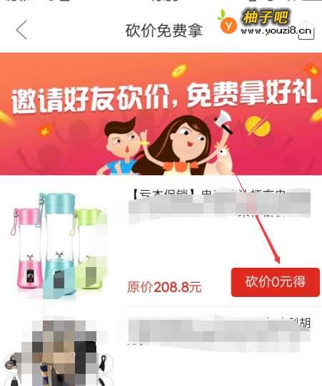 2找到自己心仪的商品,点击后面的“砍价0元得”。