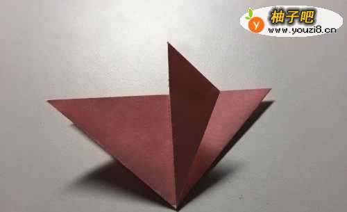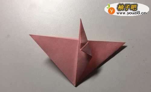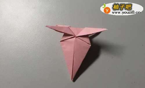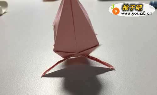 7将折好的从中间鼓起,桃子就折好啦~~下面有套在笔上的样子~~~