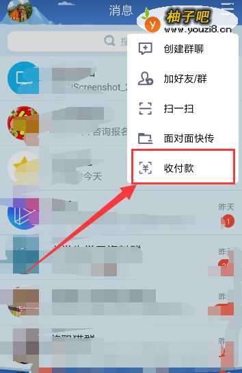 4然后,你就可以看到有个收付款的选项,点击进行选择,如图所示