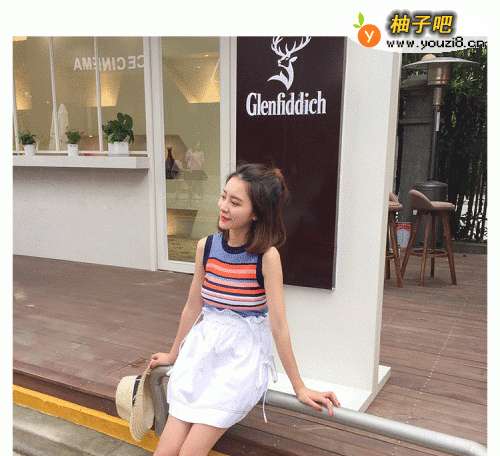 7这件黑色的小花V领无袖上衣,搭配上纯白或乳白色的短裤,让人有眼前一亮的感觉,既端庄高雅又不失活泼简单,很好的一个搭配方式,在视觉上有效的增加大长腿的既视感。