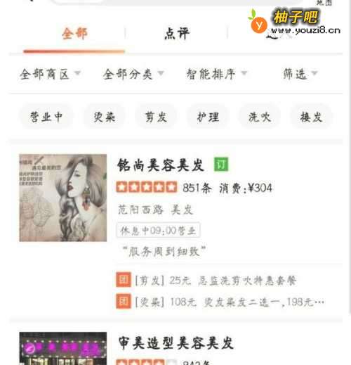 3在查找出来的结果里面选择你想要去的理发店,点击理发店名称