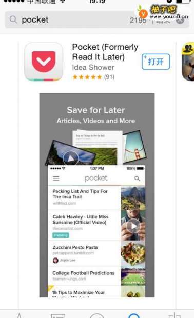 6如果我们在公交车上,咖啡厅,餐厅等等一些无法使用PC的地方,我们还可以在智能手机上面使用Pocket工具,以iPhone为示例,只要在 Store里面搜索“Pocket”就可以搜到,下载后打开登录就出现了未读列表,点进去阅读即可,读完直接打勾消去即可。方便吗?尽情享受便利吧^_^