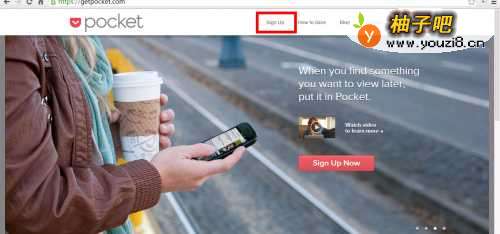打开Chrome浏览器,输入如图所示的地址 https://getpocket.com 或者百度搜索Pocket即可搜到,进入Pocket工具的Web首页,是一些Pocket的介绍,对于新用户来说,我们先“Sign Up(注册)”,然后再“Login In(登录)”,如图所示