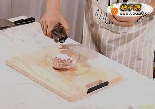 22.肉末放入淀粉、料酒抓匀后,腌制10分钟