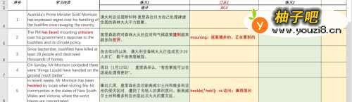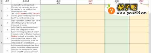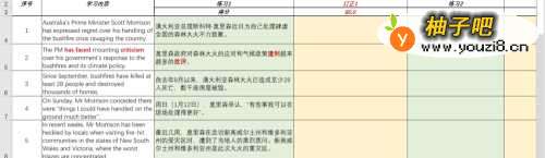 准备一份自己感兴趣领域的双语阅读材料,渠道尽量要求、正规,例如经济学人,VOA,ChinaDaily或正式出版的英文小说等。以近期双语新闻为例,j将英语部分按照机子拆分,记录在Excel中。