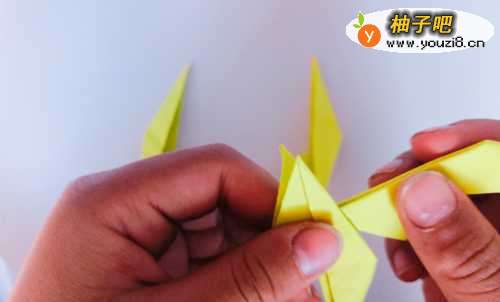 5折好以后我们拿出两个,沿着下方的缝隙,将其插入,然后拿出另外两个同样的方法插入。