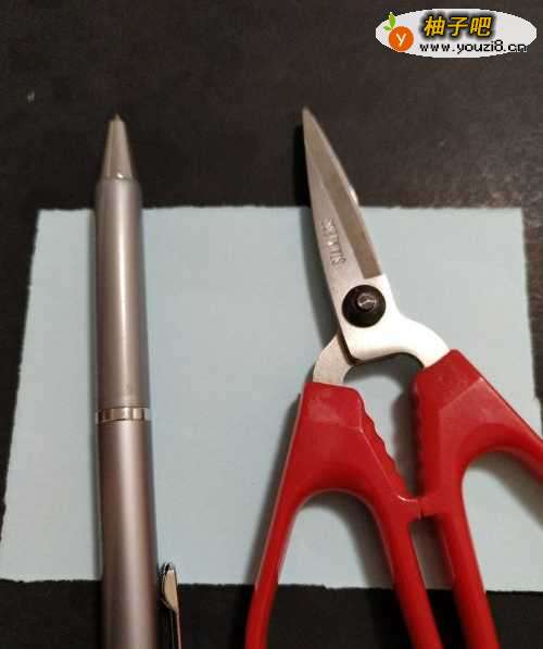 第一步,先准备好一张纸、一支笔和一把剪刀。