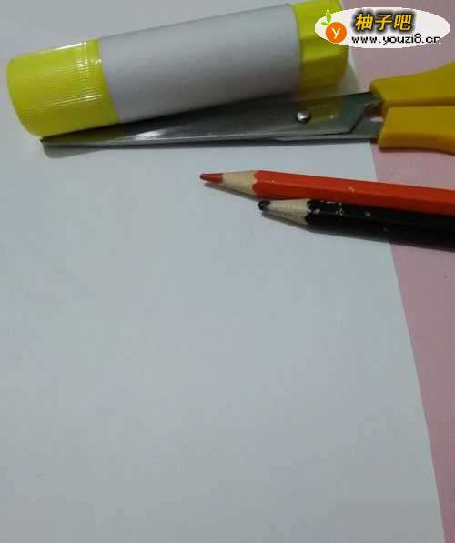 做这个小玩具,需要白纸、彩纸、剪刀、胶棒、彩笔。