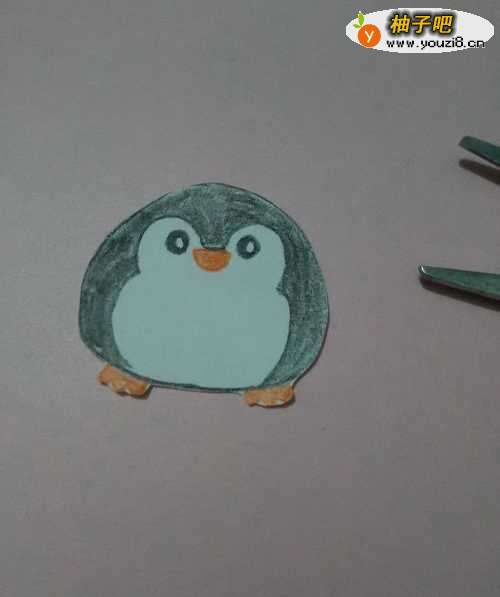 8用剪刀将画好的小企鹅沿着边缘剪下来。