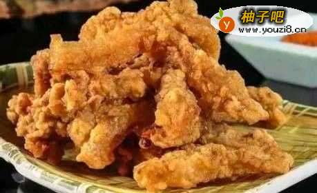 6待锅中的油再次烧热后,大火放入炸过一边的猪肉,待将其炸至金黄后,即可捞出来,沥干油分,按照个人口味添加椒盐、孜然粉等食用即可。