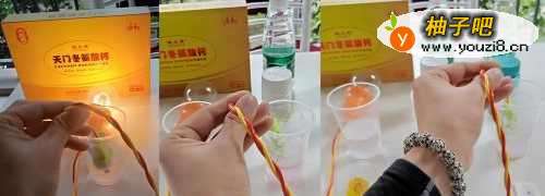 钙及微量元素是可以导电的(纯净水不含矿物质不导电),自制一个简易的带有灯泡和插头的导电装置,将插座分别放在3杯溶解有钙的水中,看灯泡是否发亮,实验发现另外2款钙灯泡没有亮。说明另外两款钙片的钙含量较低。