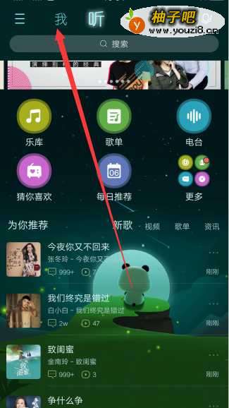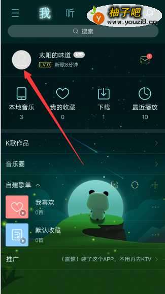 2接着进入到【我】界面,显示自己听过的歌曲等信息,点击个人头像。