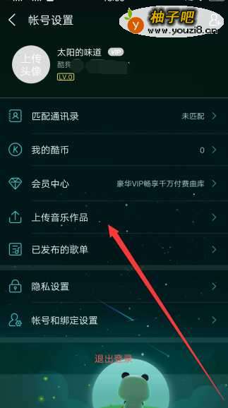 4接下来进入到账号设置页面,点击其中的上传音乐作品选项。