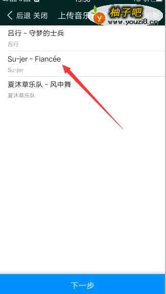 6然后会显示自己手机里的音乐作品,自动搜索的哦,比如这里小编选择一首外文歌曲,点击底部的下一步按钮。