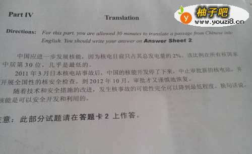 8最后就是比较看运气的汉译英了,一般四级考试abc三套卷子的难易就体现在汉译英上。
